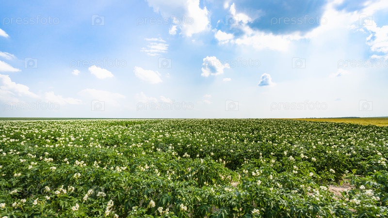 Вид зеленого поля картофеля во Франции