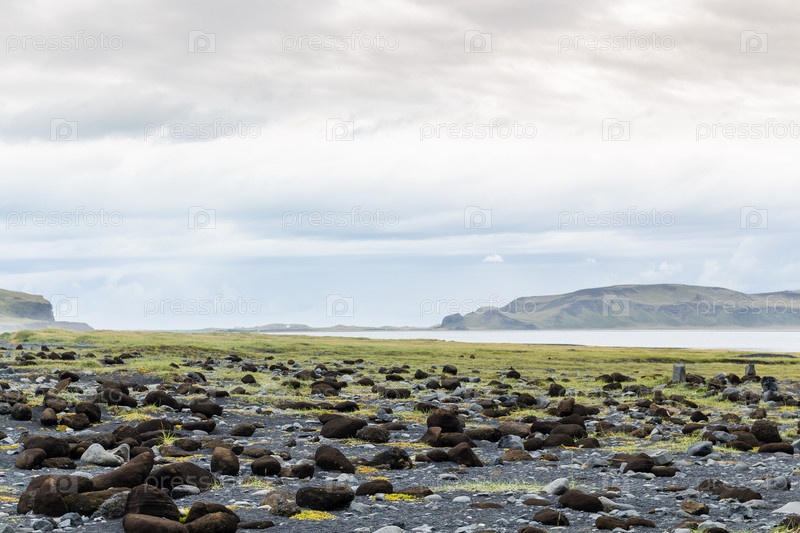 Булыжники на черном пляже Рейнсфьяра в Исландии