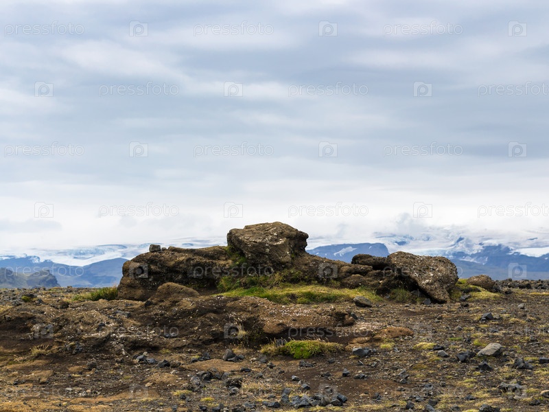 Вулканическая поверхность полуострова Дирхолей в Исландии