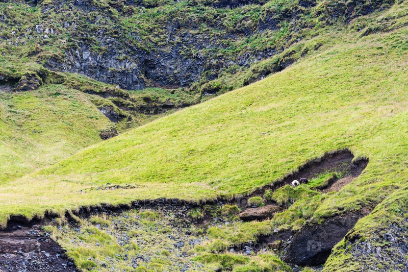 Зеленые склоны Рейнисфьяль горы в Исландии