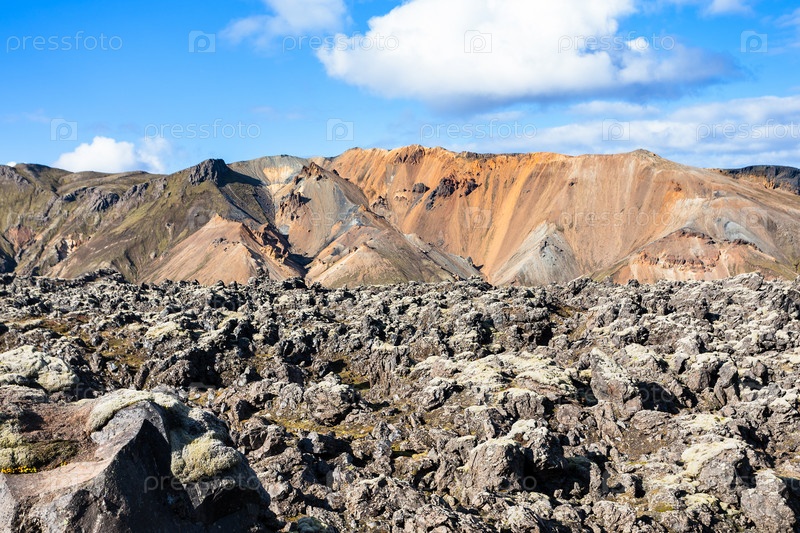 Вулканические глыбы на лавовом поле в Исландии