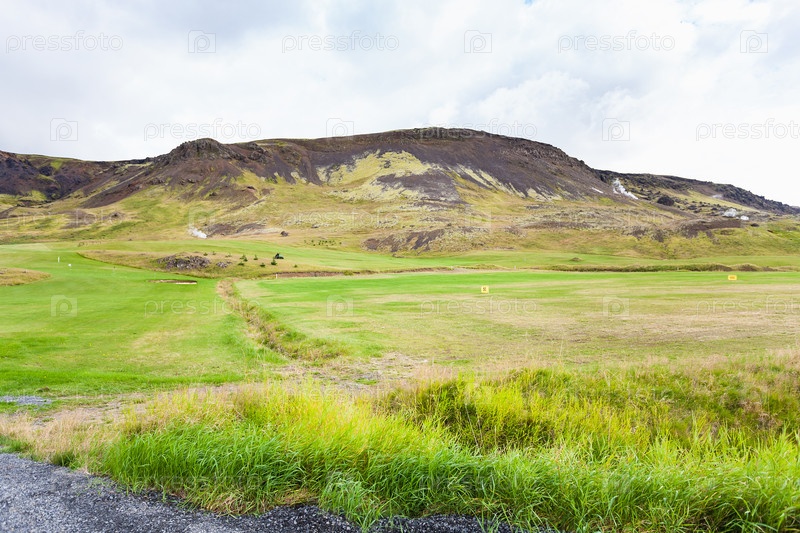 Панорама зеленой долины в Хверагерди в Исландии