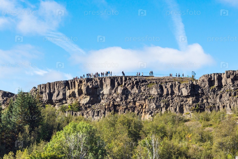 Туристы на смотровой площадке в парке Тингведлир