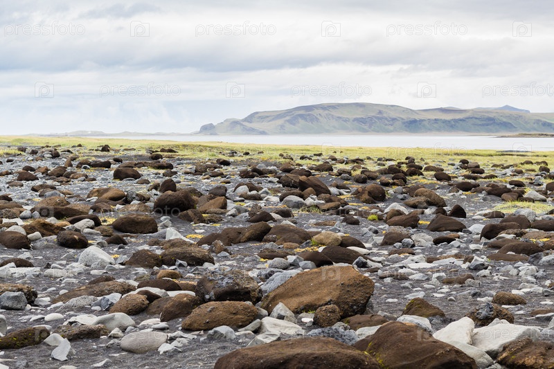 Булыжники на черном пляже Рейнсфьяра в Исландии