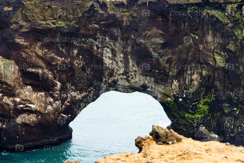Естественная арка в скалах Дирхолей в Исландии