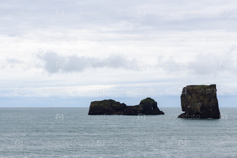 Скалы в океане и на мысе Дирхолей в Исландии