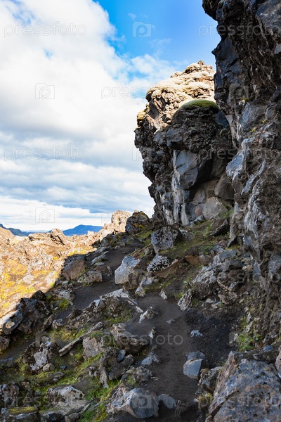 Склоны каньона в Ландманналейгаре в Исландии