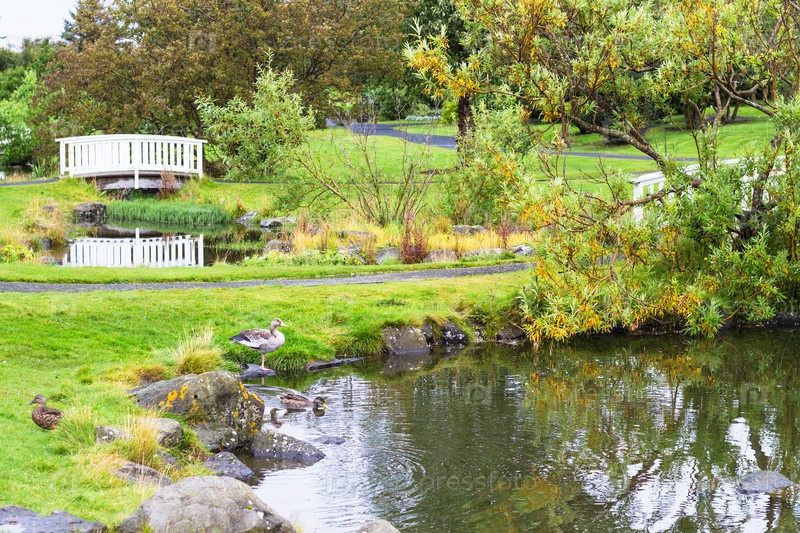 Пруды в парке в Лаугардалур долине Рейкьявике