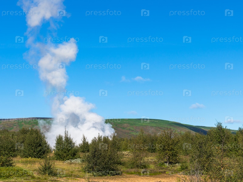 Извержение гейзера в Хейкадалюр в Исландии