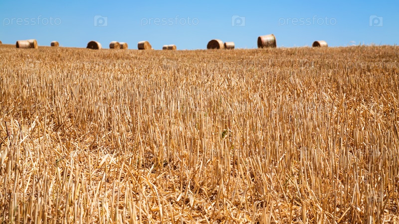 Заготовленные поле с тюками соломы во Франции