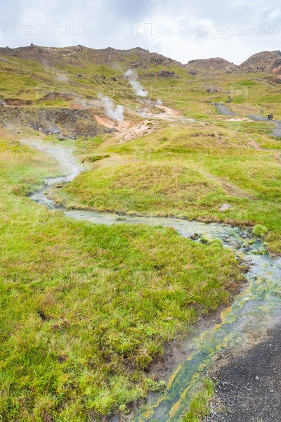 Поток горячей воды в Хверагерди в Исландии
