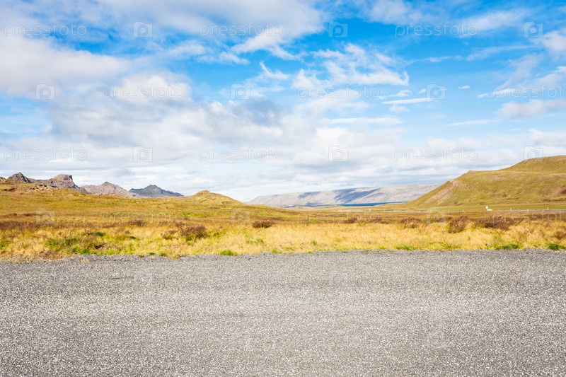 Желтый луг на южном полуострове в Исландии