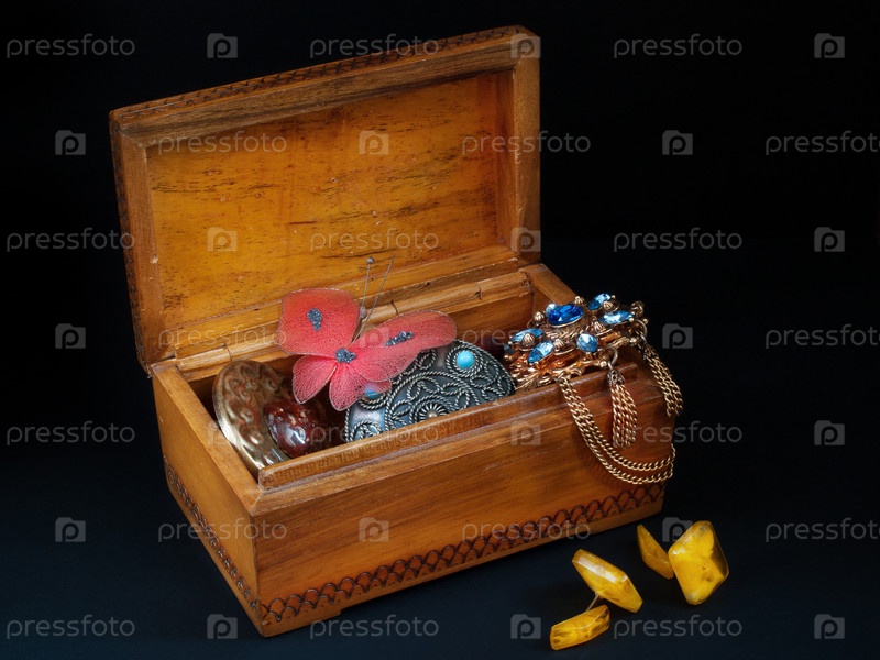 Старая деревянная коробка с бижутерией