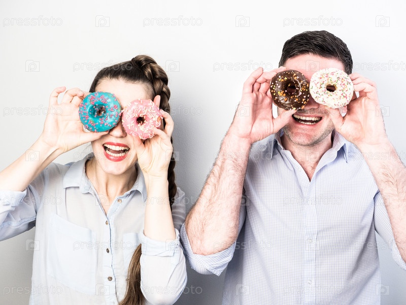 Пара с красочными пончиками