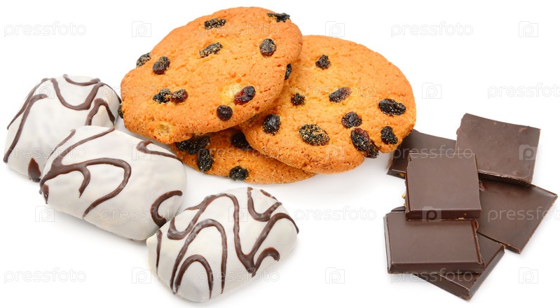 Печенье и шоколад, изолированные на белом фоне