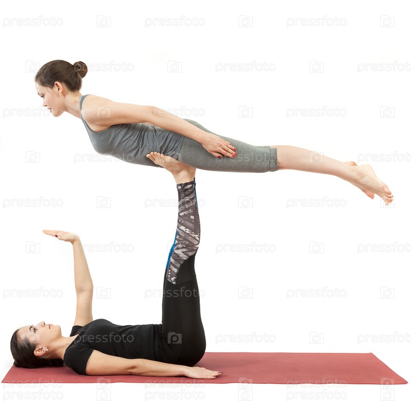 Две молодые девушки занимаются йогой