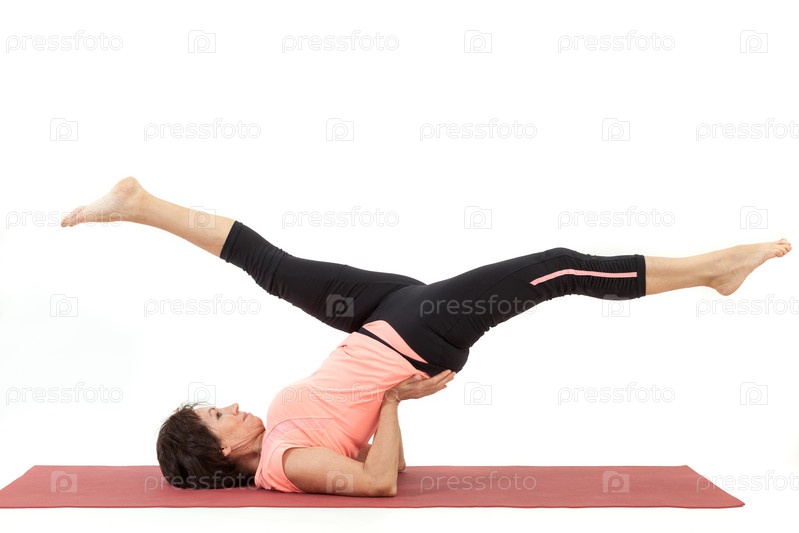 Красивая зрелая женщина занимается йогой