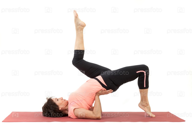 Красивая зрелая женщина занимается йогой