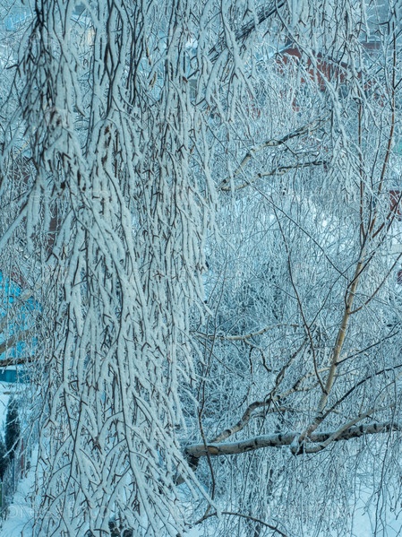 Березовые ветви, покрытые инеем