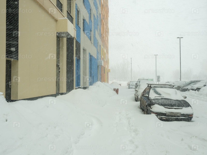 Сильный снегопад в городе