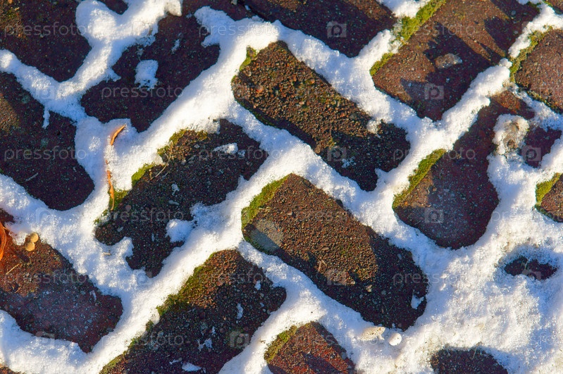 Красная кирпичная кладка и снег