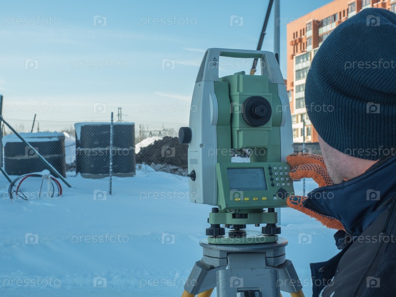 Человек, работающий с теодолитом