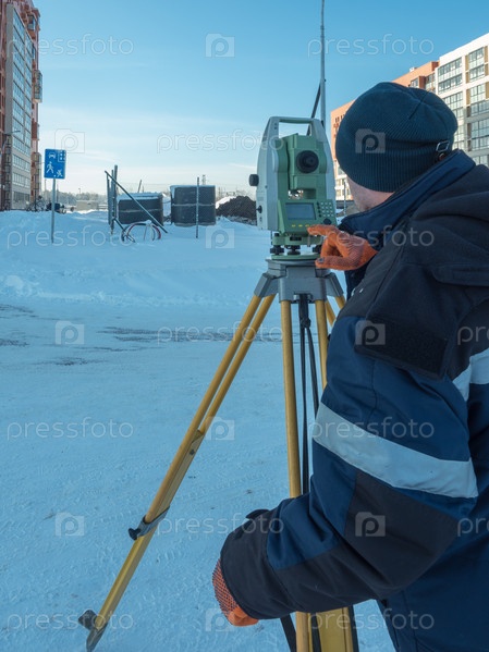Человек, работающий с теодолитом