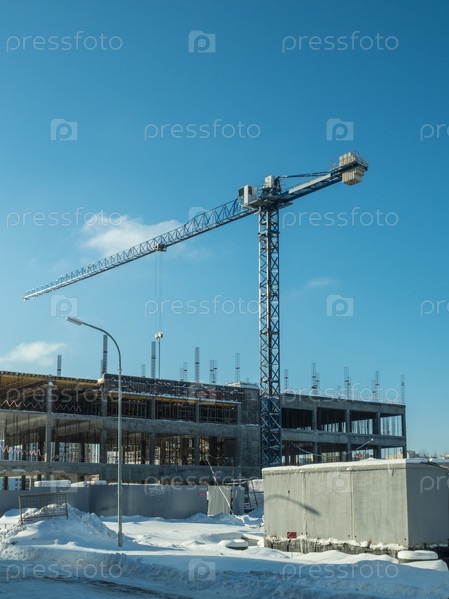 Строительный кран рядом с домом под строительство. Москва, Россия