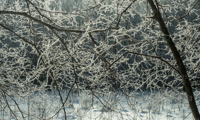 Деревья и кустарники, покрытые снегом