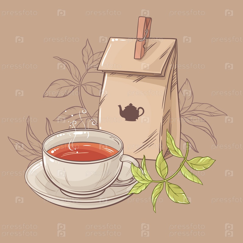Чашка чая и бумажная упаковка чая