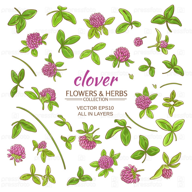 Клевер растение набор на белом фоне