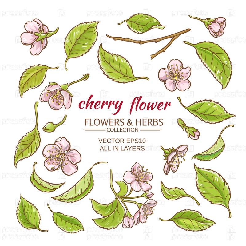 Вишневые цветы на белом фоне