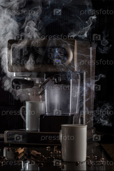 Приготовление утреннего кофе эспрессо с кофеваркой
