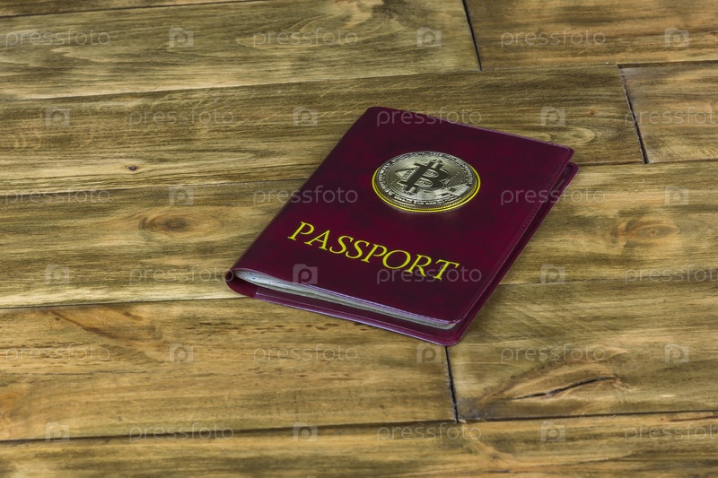 Паспорт и монета биткоин