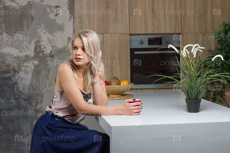 Красивая блондинка в домашней одежде