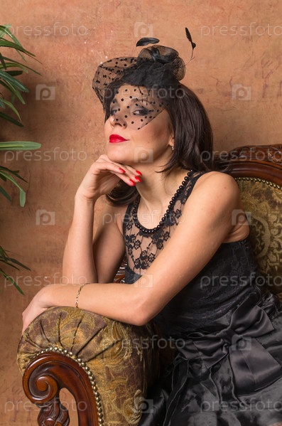 Красивая мечтательная девушка, одетая в стиле ретро