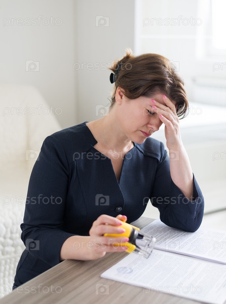 Женщина бухгалтер работает с головной болью