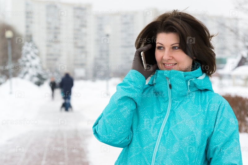 Женщина разговаривает по телефону в городе Москва, Россия
