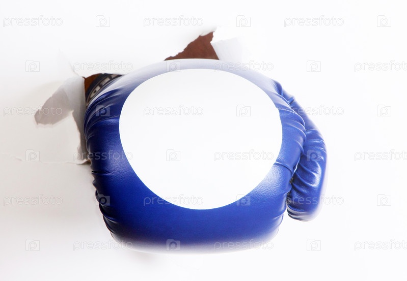 Боксерская перчатка в отверстии бумаги