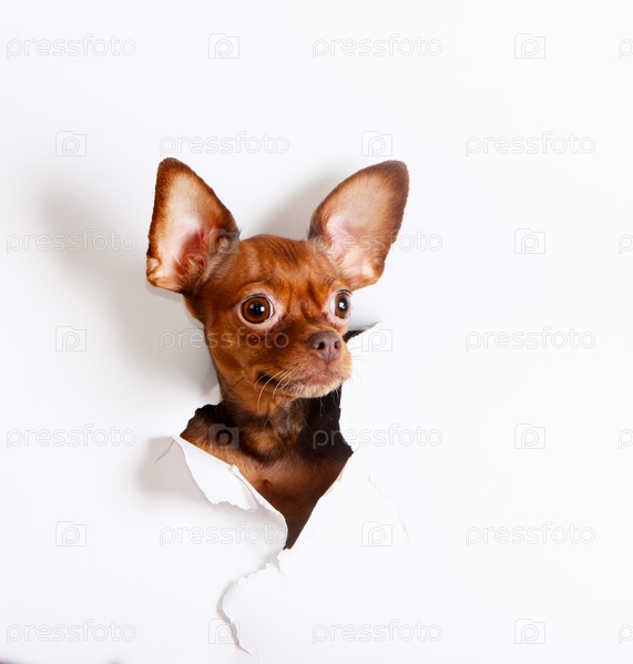 Голова щенка в отверстии бумаги
