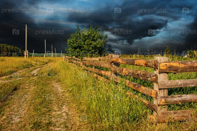 Сельский пейзаж с грозовым небом