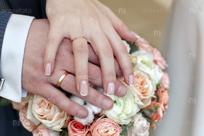 Руки жениха и невесты с кольцами
