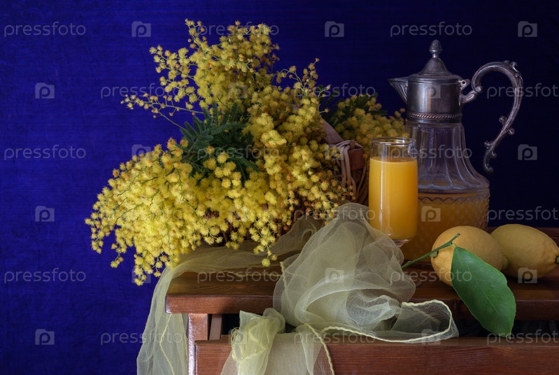 Натюрморт со свежими ветвями мимозы