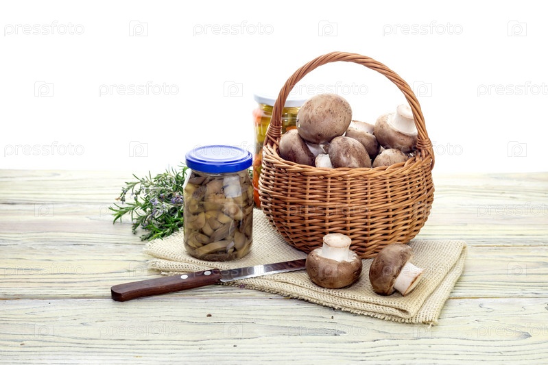 Свежие грибы в плетеной корзине