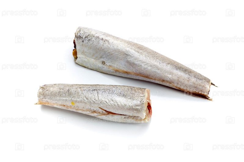 Два куска сырой трески на белом фоне