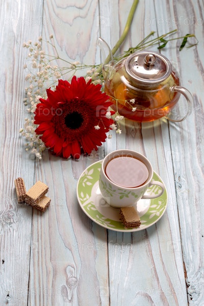 Травяной чай и герберы