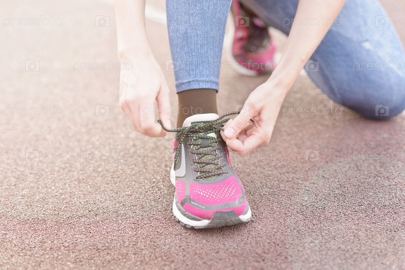 Завязывая шнурки спортивной обуви