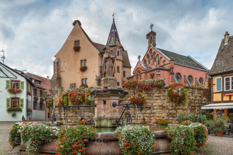 Главная площадь в Эгишем, Эльзас, Франция
