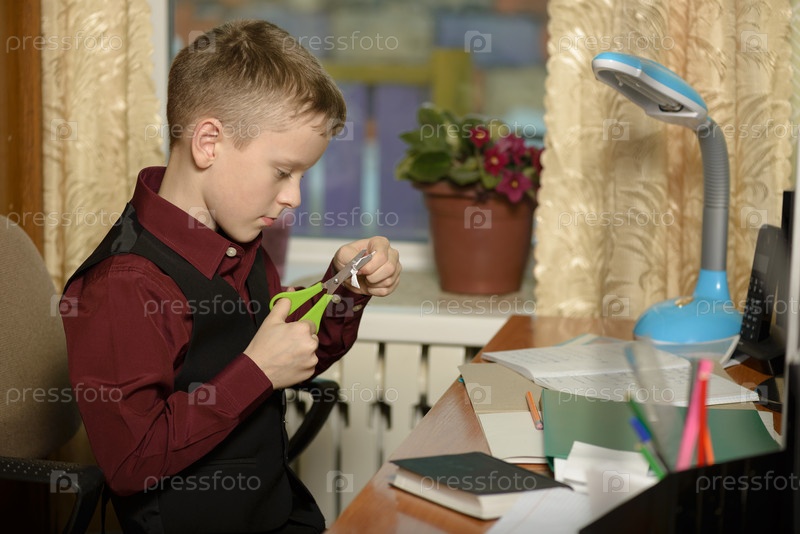 Мальчик работает за письменным столом