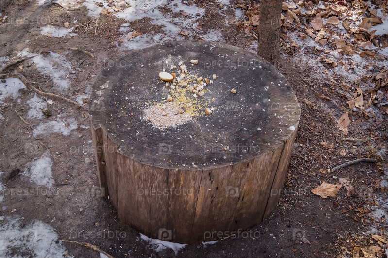 Пень и корм для птиц
